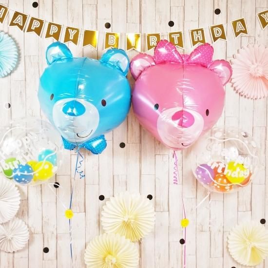 大きなくまさんを横から見ると、かわいいお口がちらり!くまさんと一緒に楽しいお誕生日をお過ごし下さいね✧♡