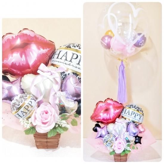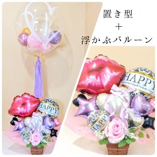 置き型アレンジに、浮かぶバルーンがついたDXタイプ!豪華なプレゼントをお探しの方におすすめです。