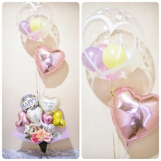 ※こちらのアレンジは、TOPのハート型バルーンにお好きな文字を無料でお入れいたします。