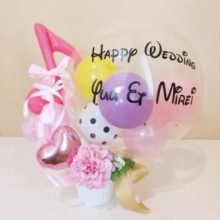 アルファベットバルーンを使用した華やかで大人可愛い置き型アレンジ。