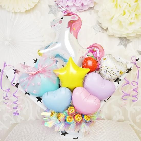 ユニコーンが主役の、ゆめかわいい置き型アレンジ✧♡