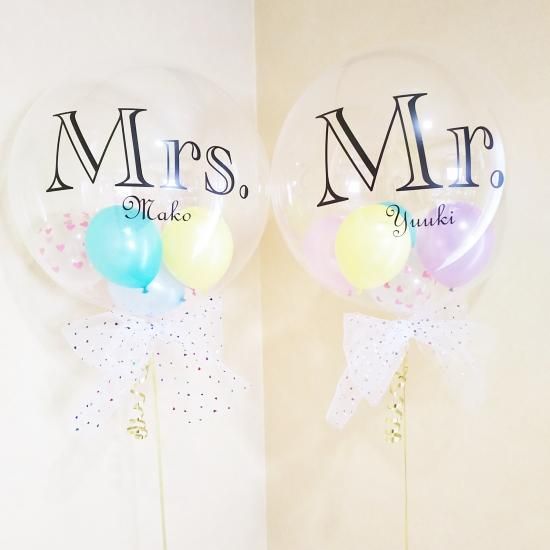 ウェディングにペアバルーンは如何ですか?こちらの商品に限りそれぞれにお好きな文字をお入れいたします。
