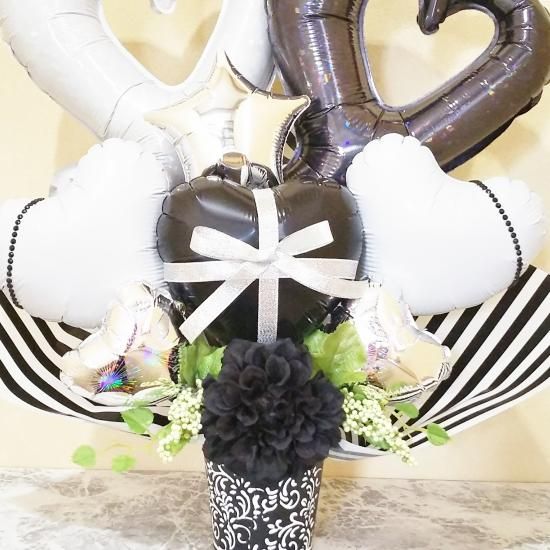 モノトーンでモダンな印象のかっこいい置き型アレンジ♫男性へのプレゼントにもおすすめです。