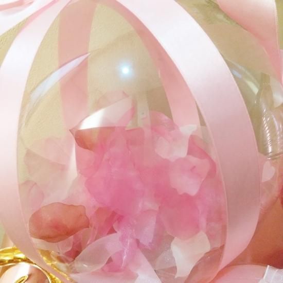 丸い透明バルーンには、人気の造花ペタルをお入れしております♫