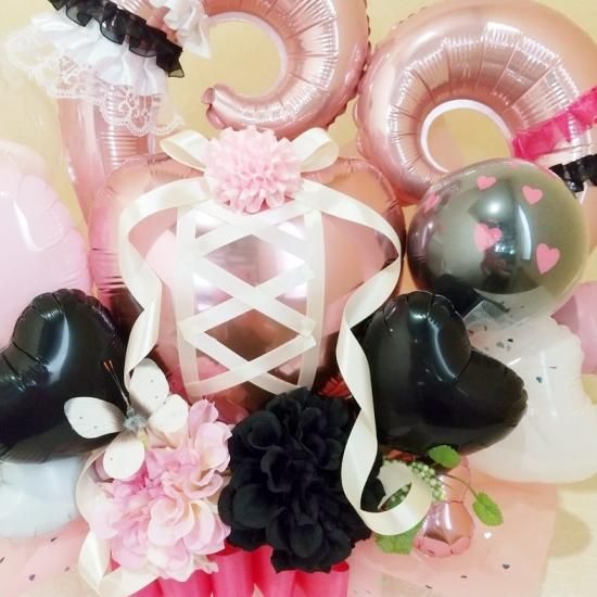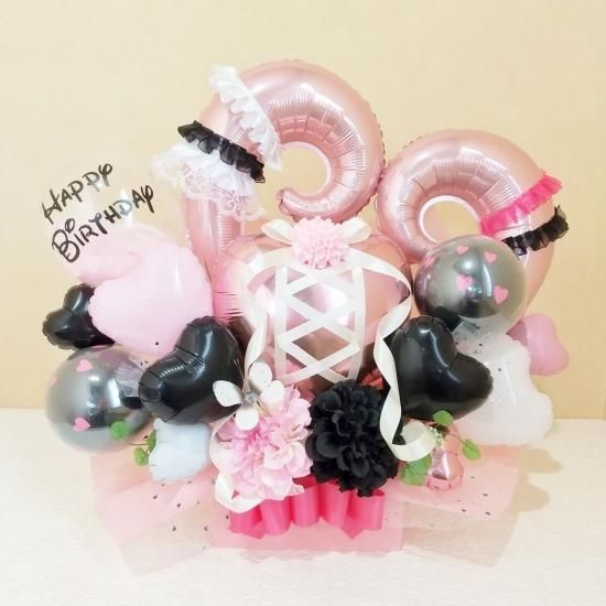 ハートバルーンがいっぱいのとってもラブリーな置き型アレンジ♡