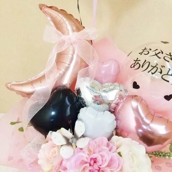 置き型アレンジに、浮かぶバルーンがついたDXタイプ!豪華なプレゼントをお探しの方におすすめです。